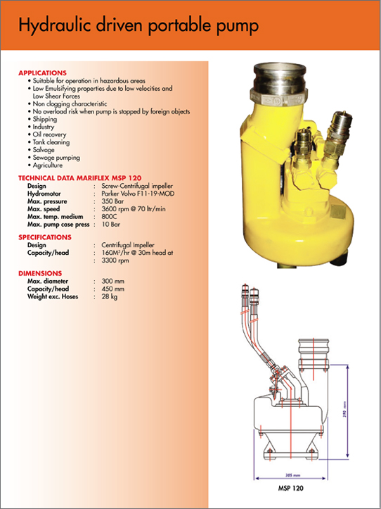 We use the following hydraulic driven submersible pump - MSP 120, for all our pumping operations.